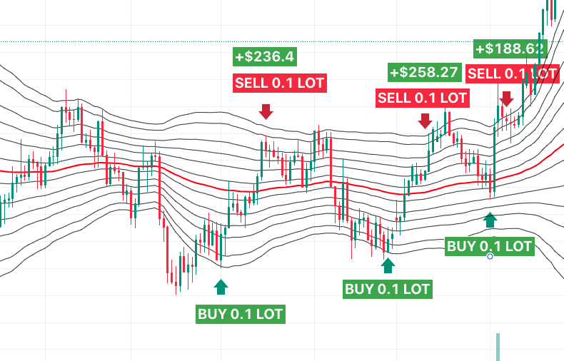 В этом сценарии бот использует уровни Фибоначчи, чтобы найти ключевые уровни поддержки и сопротивления. Потом он делает сделки на этих уровнях, пытаясь заработать на возможных разворотах цены.